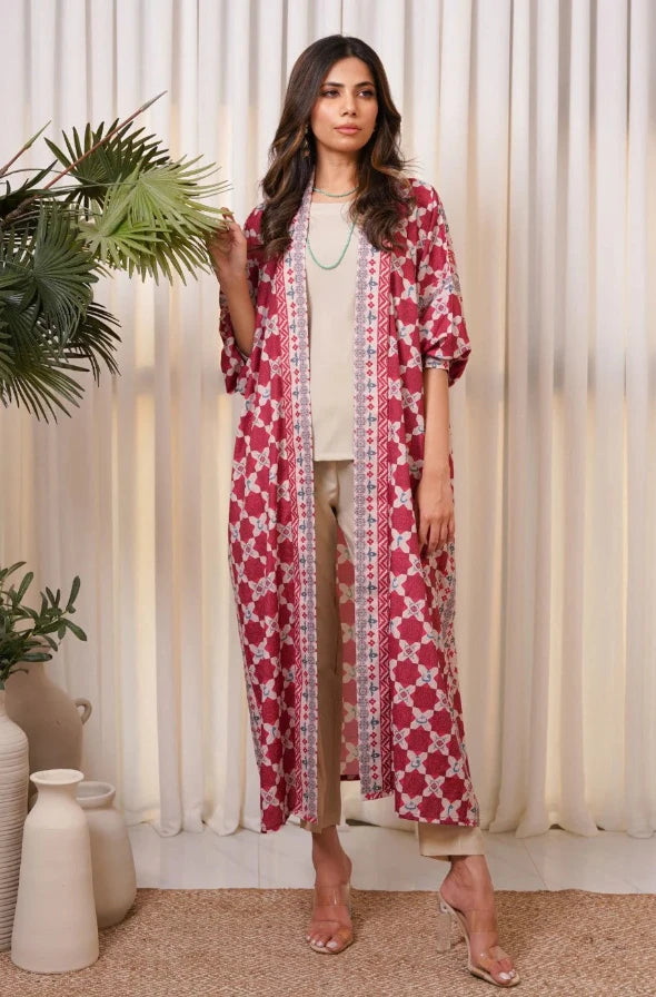 Printed Outerwear Shrug Made from Soft Crepe Features Urdu Letters Calligraphed Throughout.